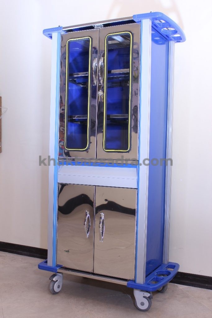 • بدنه فلزی: بدنه فلزی استحکام و دوام بالایی را تضمین می‌کند و ترالی را قادر می‌سازد تا وزن تجهیزات و مواد مختلف را به خوبی تحمل کند. فلز استفاده شده باید دارای پوشش محافظی باشد تا از زنگ زدگی و خوردگی جلوگیری شود.